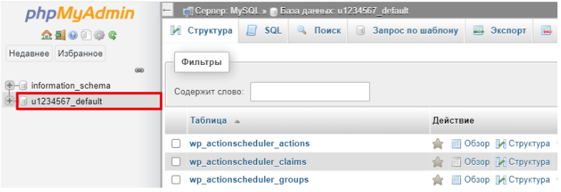 В списке таблиц кликните на таблицу префикс_users. В нашем примере префикс со значением wp: